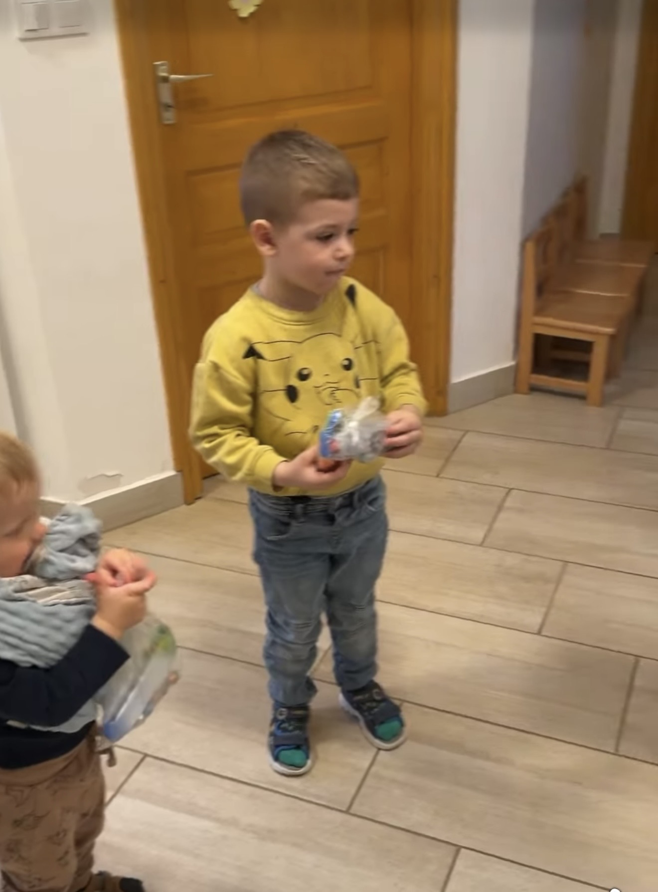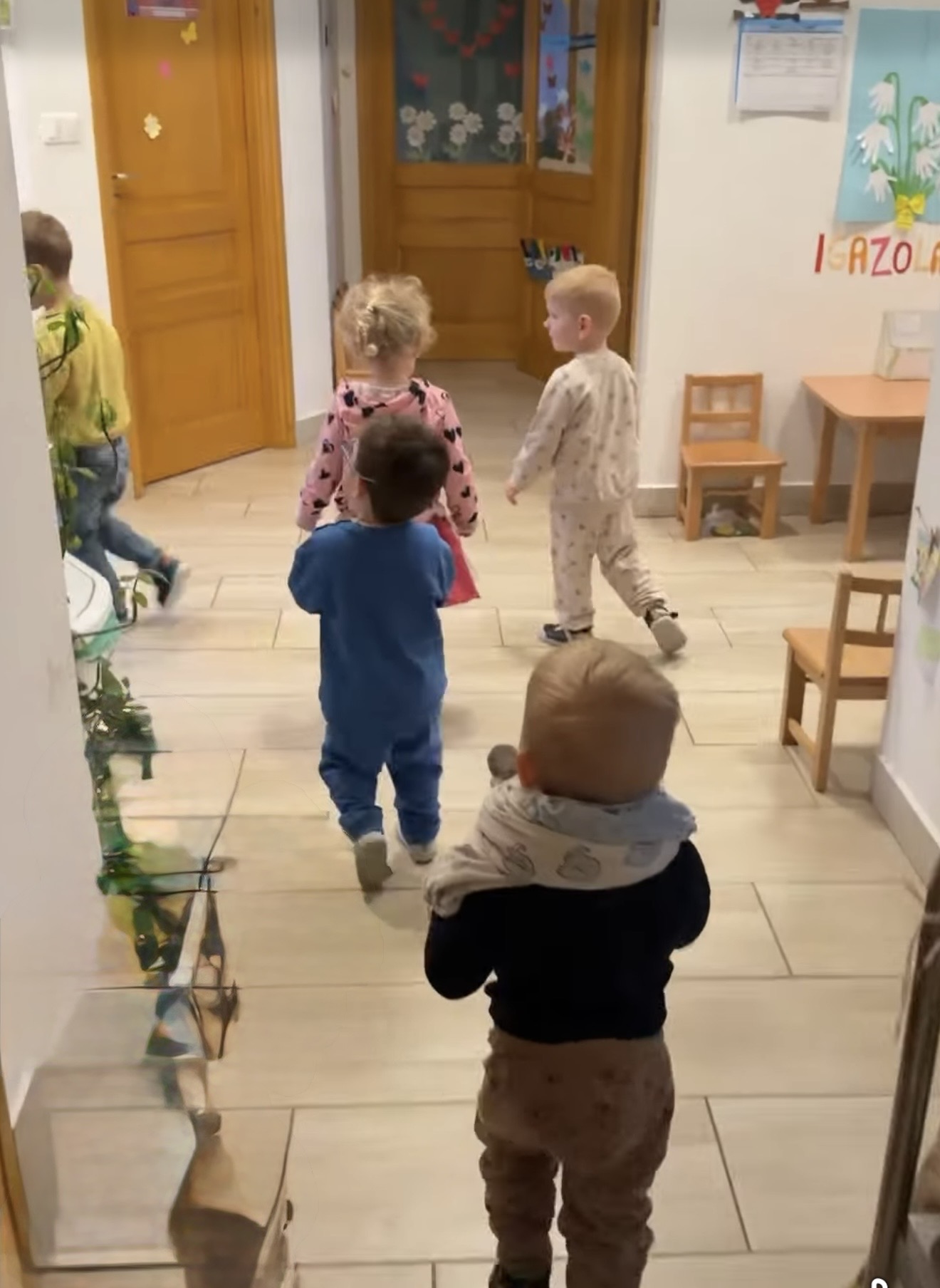 A gyerekekhez megérkezett a nyuszi, a rossz idő miatt bent voltunk, itt indult el az ajándék keresés.