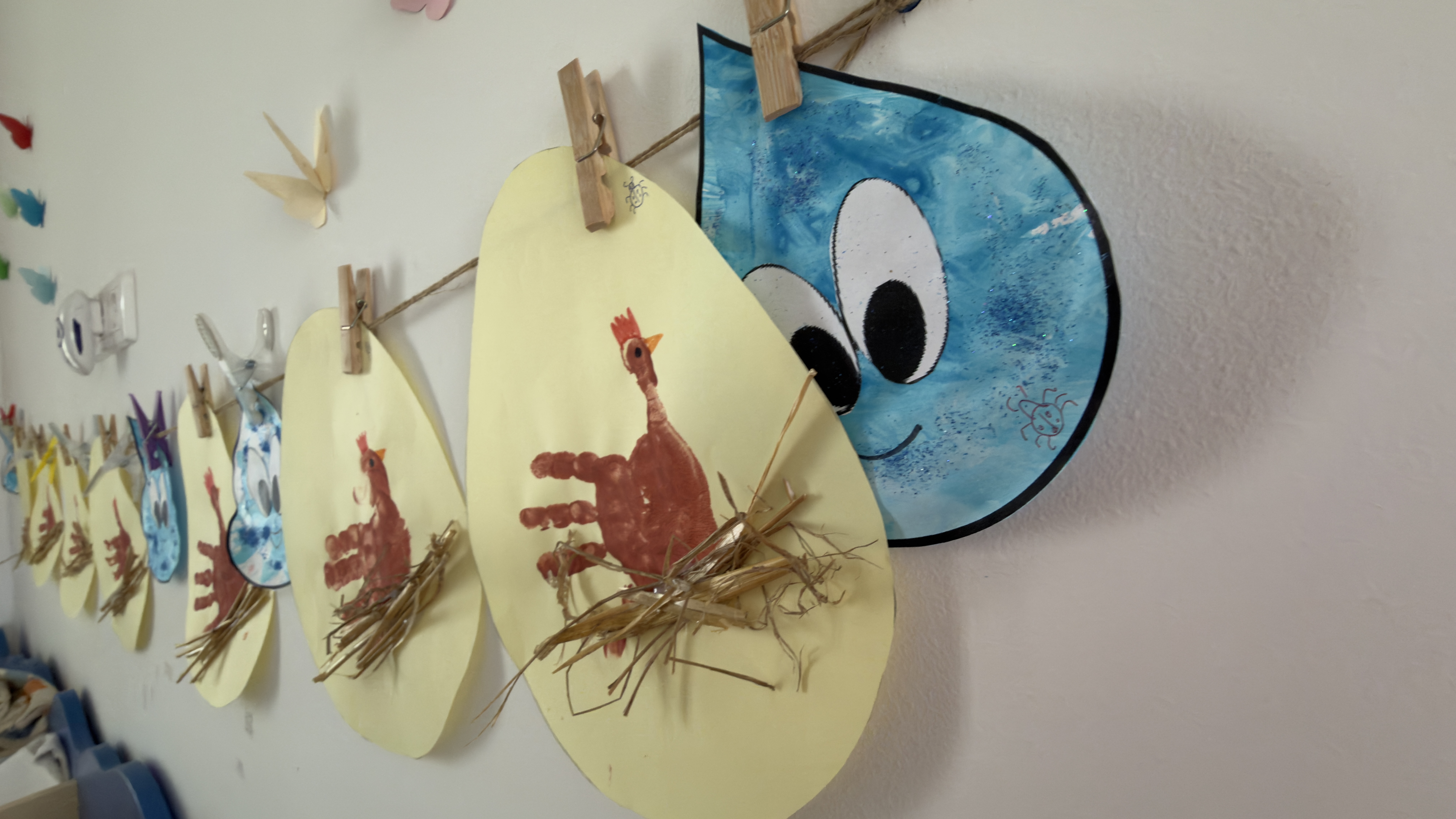 A víz világnapja alkalmából vízcseppet, húsvétra pedig tyúkocskákat készítettünk.