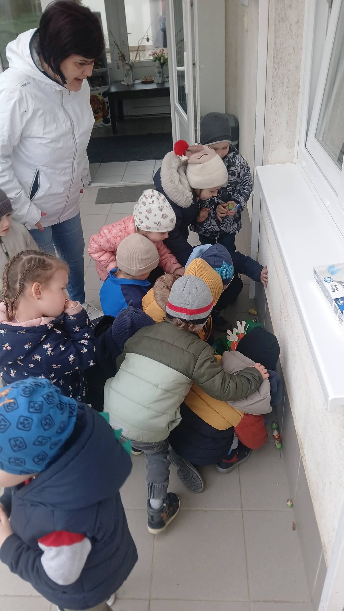A húsvét az egyik legvidámabb ünnep az óvodában, amelyet a gyerekek minden évben izgatottan várnak. Az óvodában már napokkal az ünnep előtt elkezdődik a készülődés. A gyerekek nyuszis díszeket készítenek és vidám dalokat, mondókákat tanulnak. A csoportszoba megtelik színekkel, nevetéssel, várakozással, izgalommal. Sajnos az idei évben nem tudtunk a rossz idő miatt füvet szedni a fészekhez, de a "nyuszi" így is meglepte a gyerekeket. Apró kis édességeket és nyuszi bábot hozott nekik. Az egyik szülő felajánlásaként a csoport húsvéti kalácsot is kapott, melyet örömmel és jó étvággyal fogyasztottak el a délelőtt folyamán.