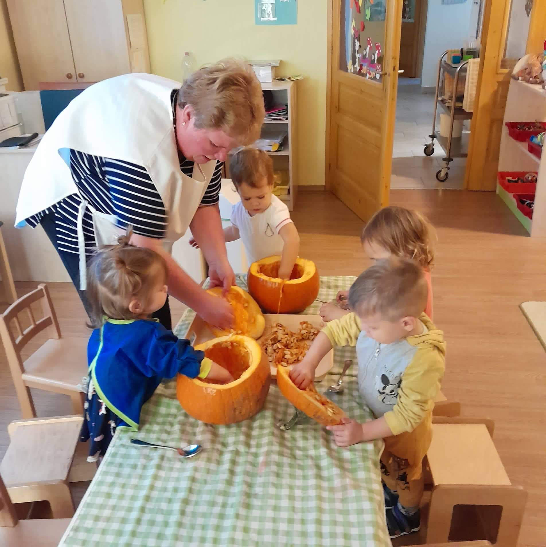 Ez az időszak igazán őszies hangulatúra sikeredett. A gyerekekkel tököt faragtunk és sokat sétáltunk a szabadban. Megismerkedtünk a ruhadarabokkal és gesztenyét is gyűjtöttünk.