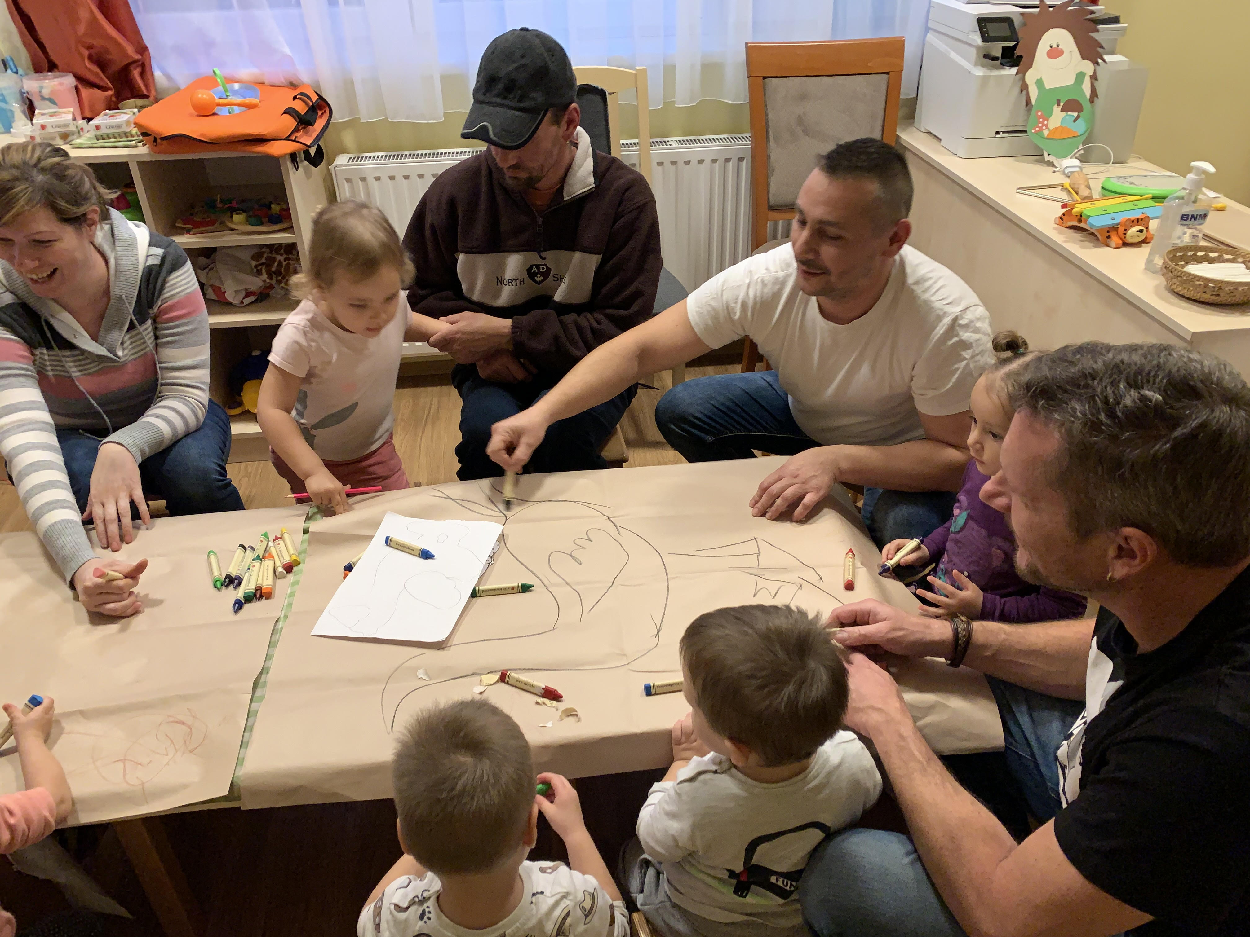 A közös családi délután nagyon jó hangulatban zajlott. A szülők libát rajzoltak, a gyerekek pedig kiszínezték.