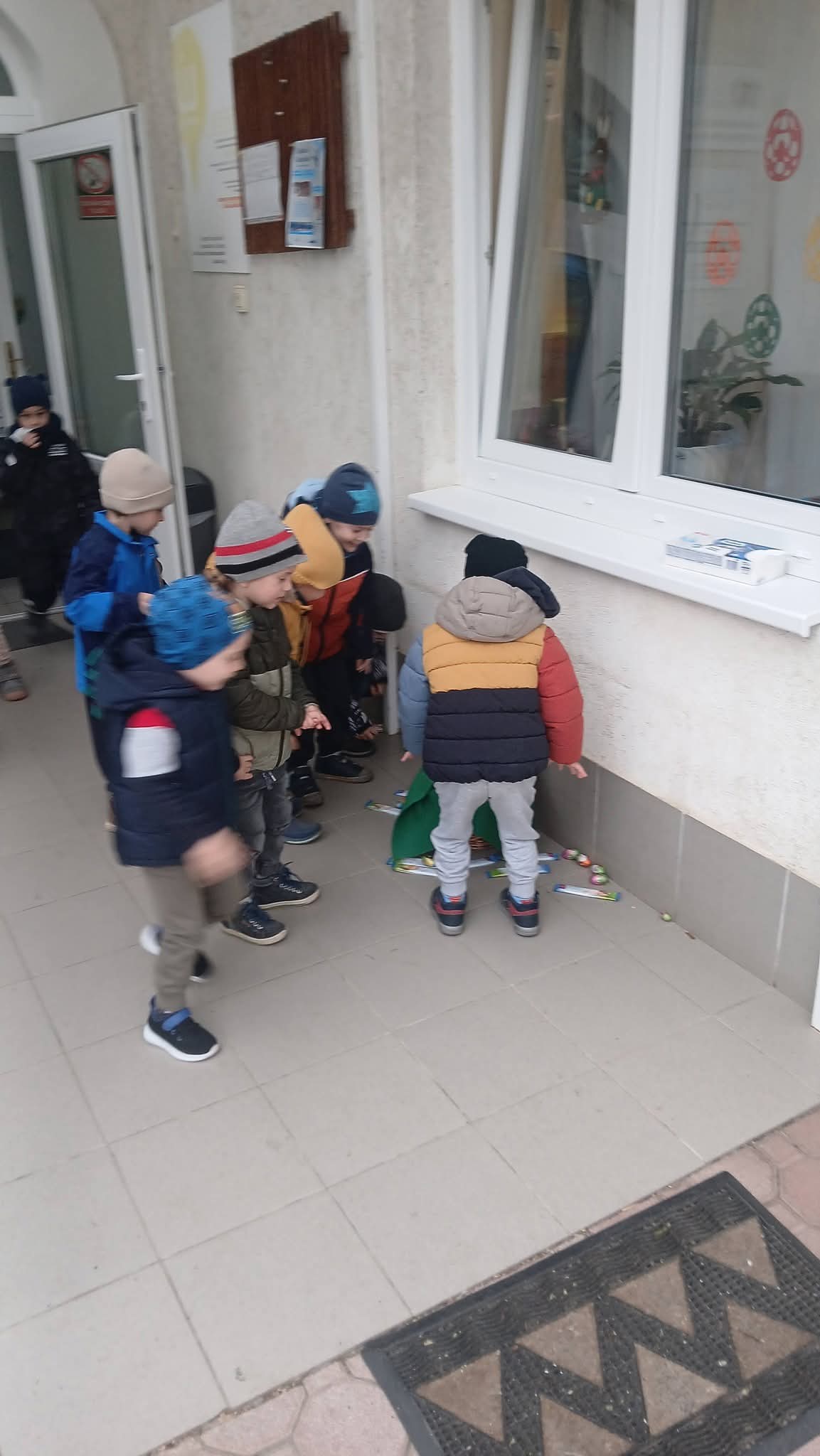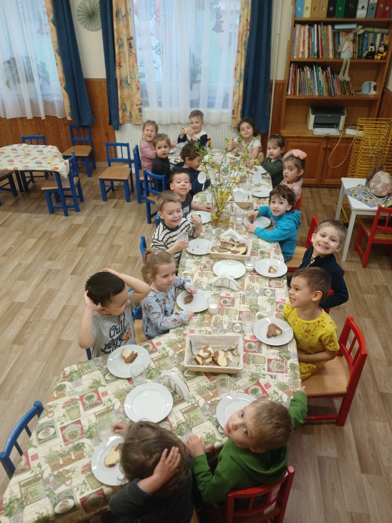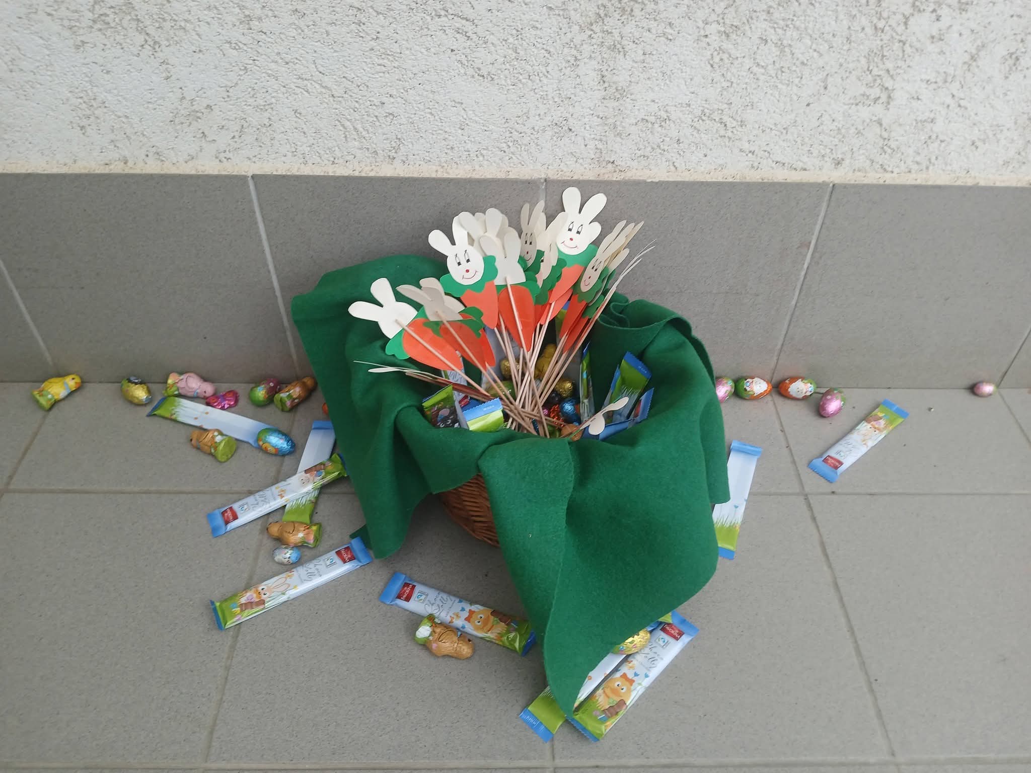 A húsvét az egyik legvidámabb ünnep az óvodában, amelyet a gyerekek minden évben izgatottan várnak. Az óvodában már napokkal az ünnep előtt elkezdődik a készülődés. A gyerekek nyuszis díszeket készítenek és vidám dalokat, mondókákat tanulnak. A csoportszoba megtelik színekkel, nevetéssel, várakozással, izgalommal. Sajnos az idei évben nem tudtunk a rossz idő miatt füvet szedni a fészekhez, de a "nyuszi" így is meglepte a gyerekeket. Apró kis édességeket és nyuszi bábot hozott nekik. Az egyik szülő felajánlásaként a csoport húsvéti kalácsot is kapott, melyet örömmel és jó étvággyal fogyasztottak el a délelőtt folyamán.