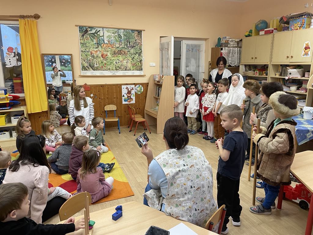 Dallal, verssel, mondókával köszöntöttük, hogy eljött hozzánk.
