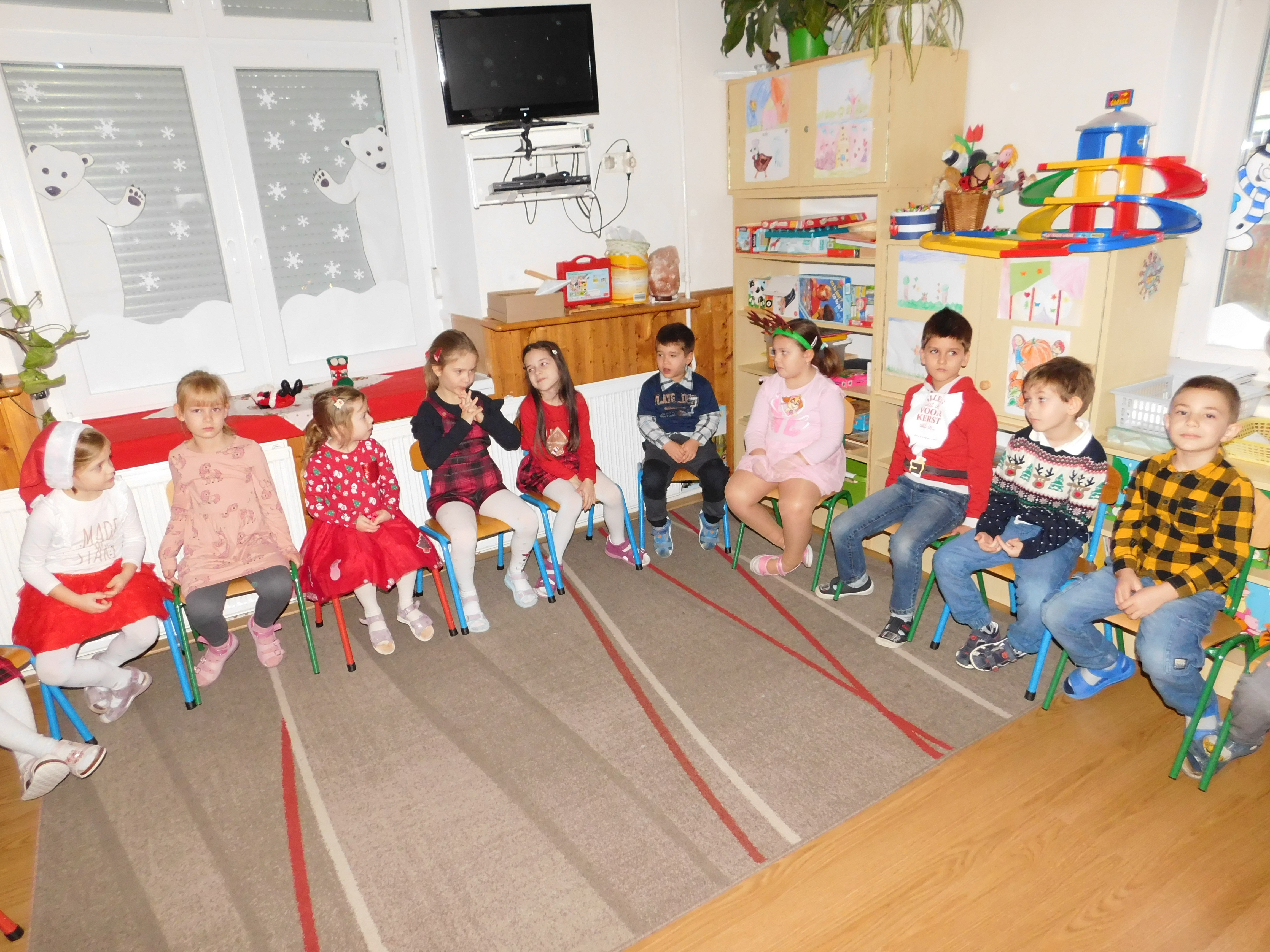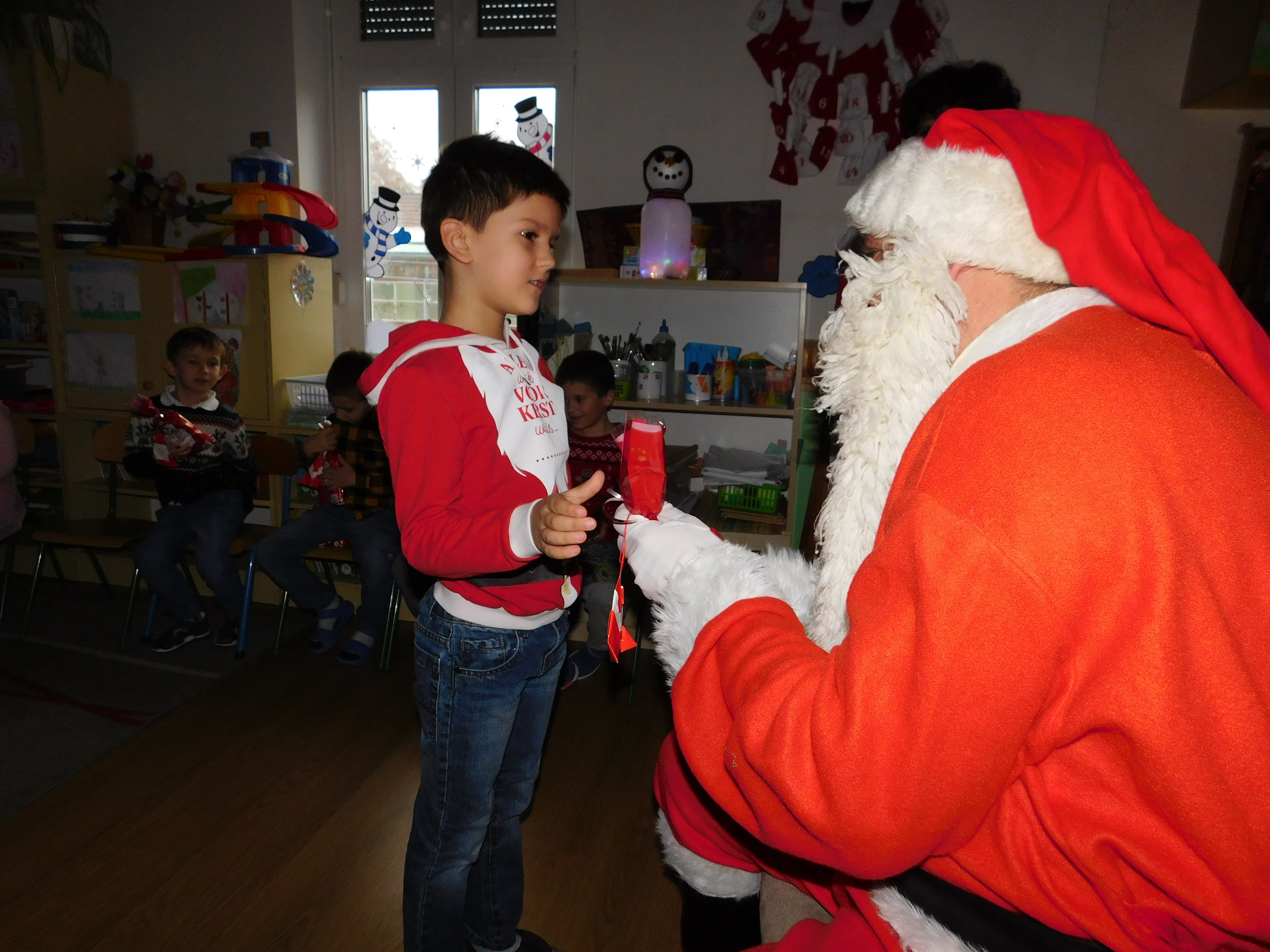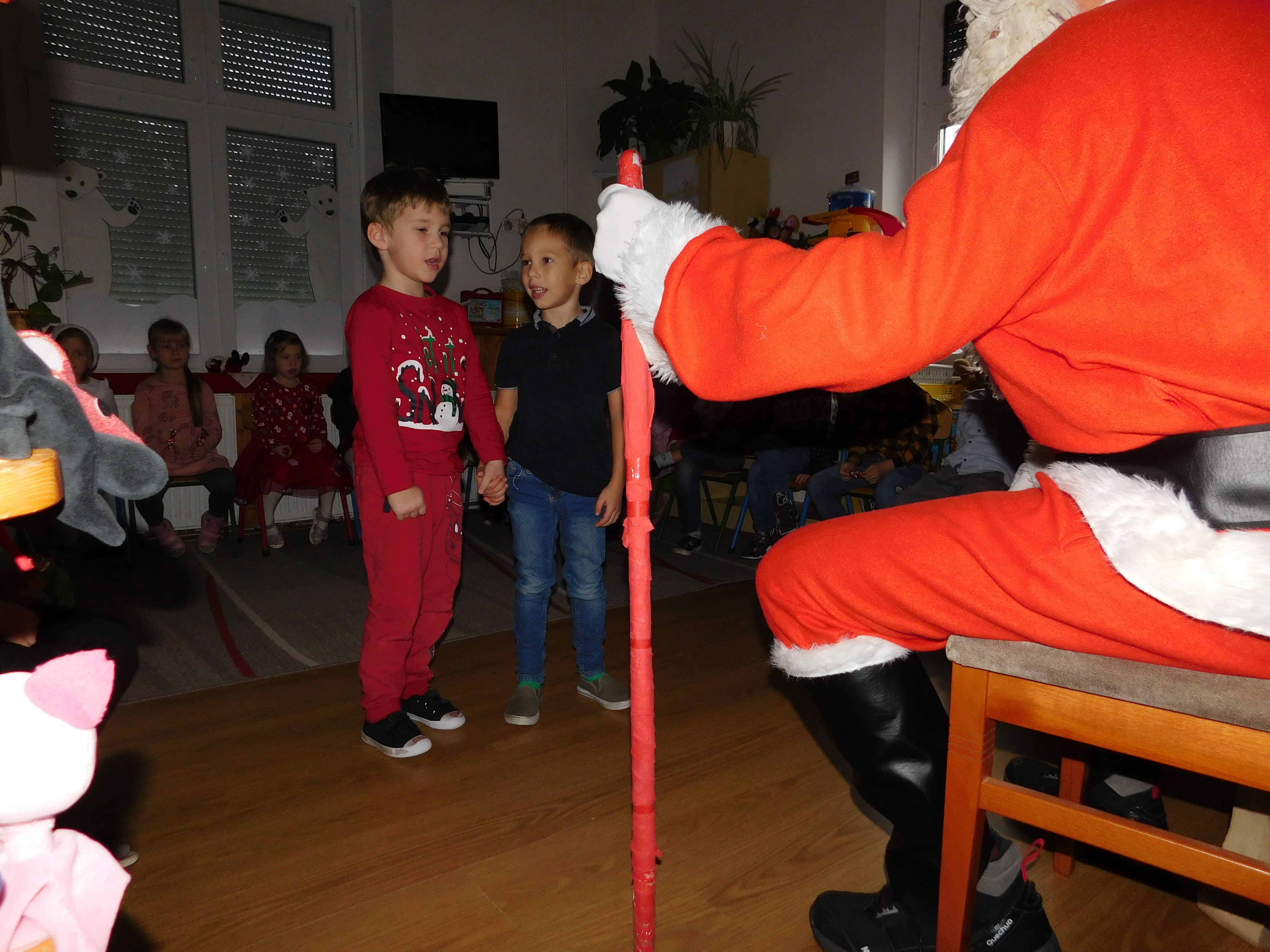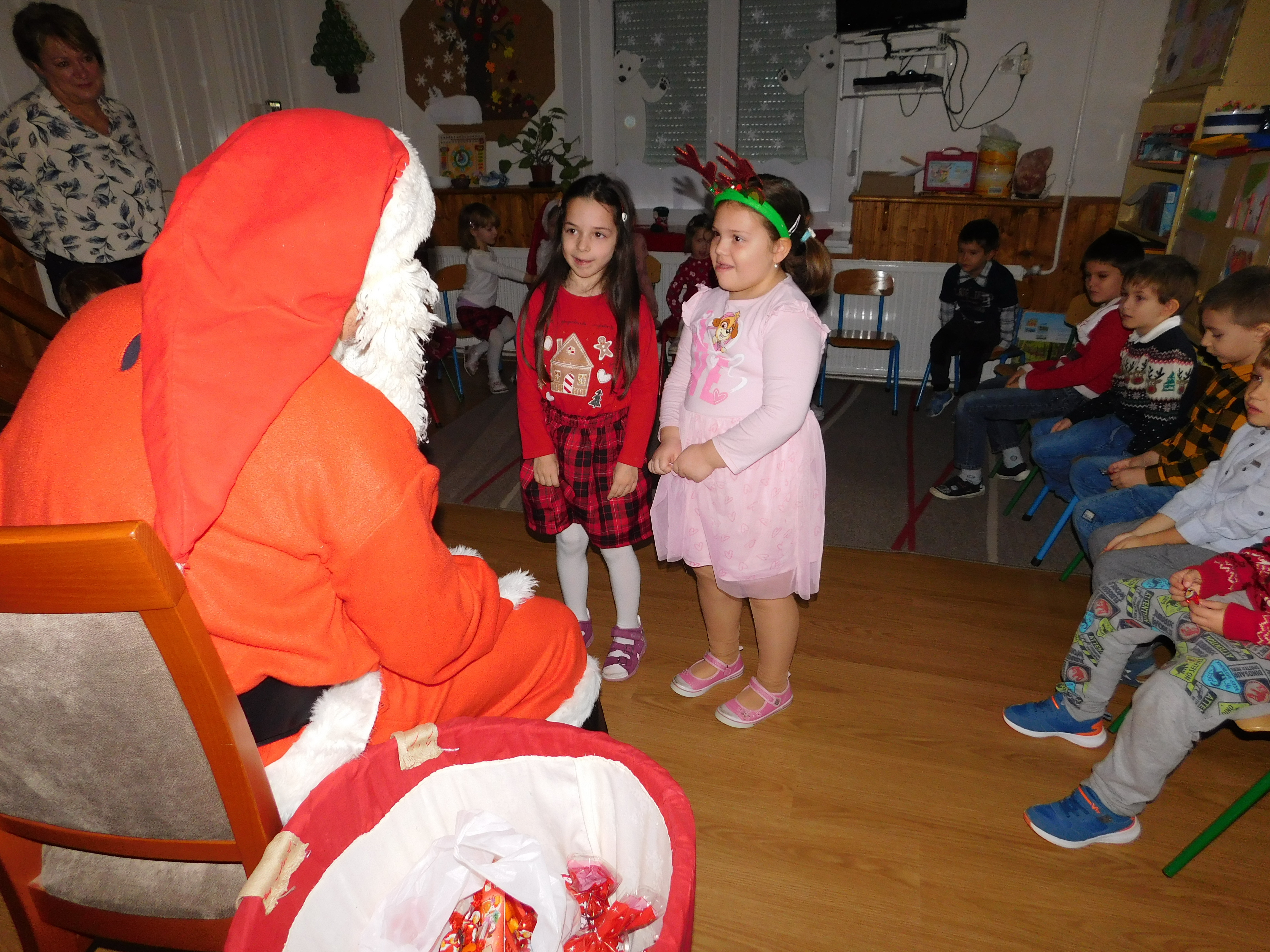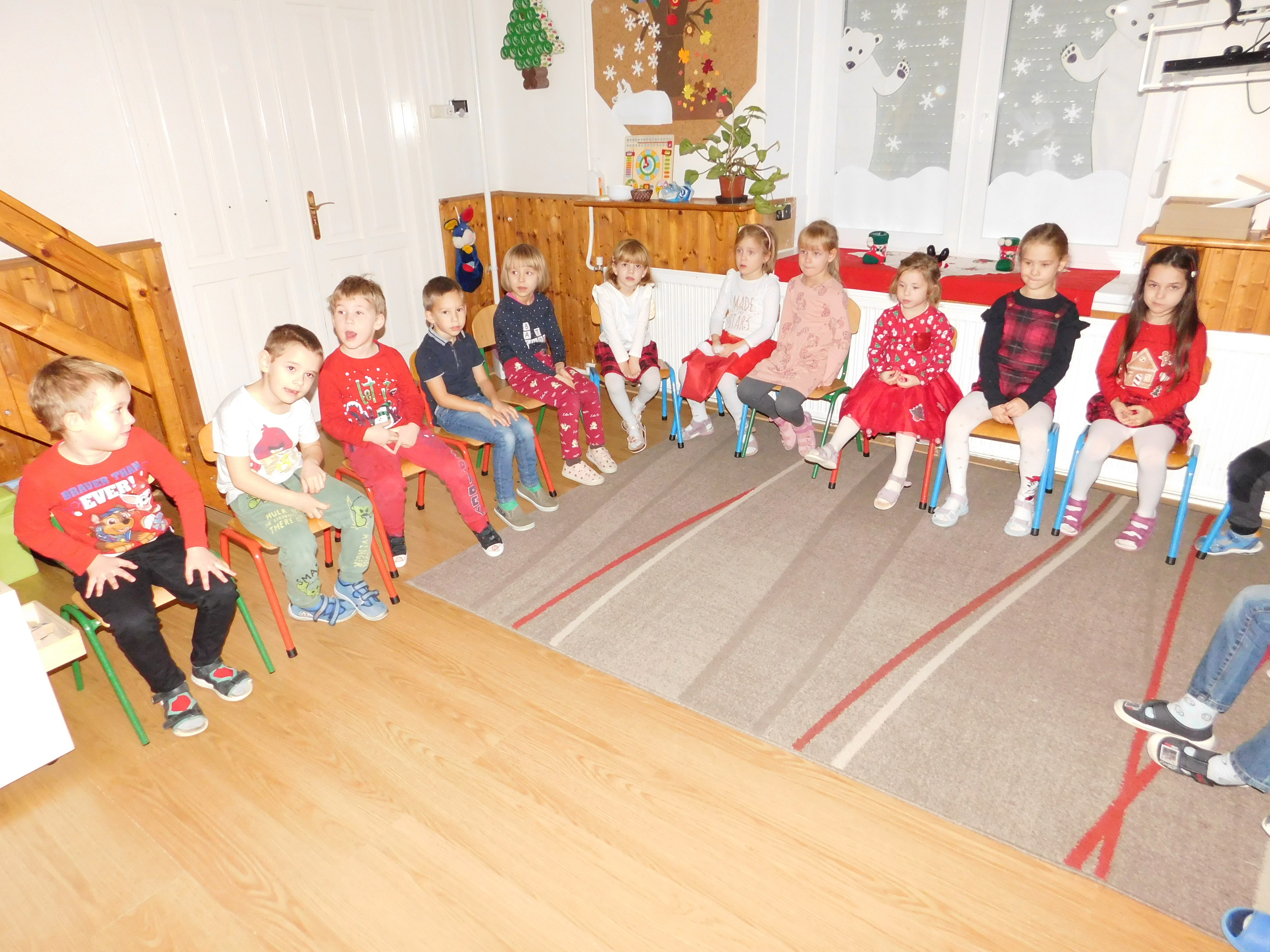 December 6. -án, a Szivárvány csoportban izgatottan várták a nagycsoportosok a Mikulást. Ünnepi díszbe öltöztetett asztaloknál, közös tízórai után meg is érkezett a nagy szakállú Télapó.