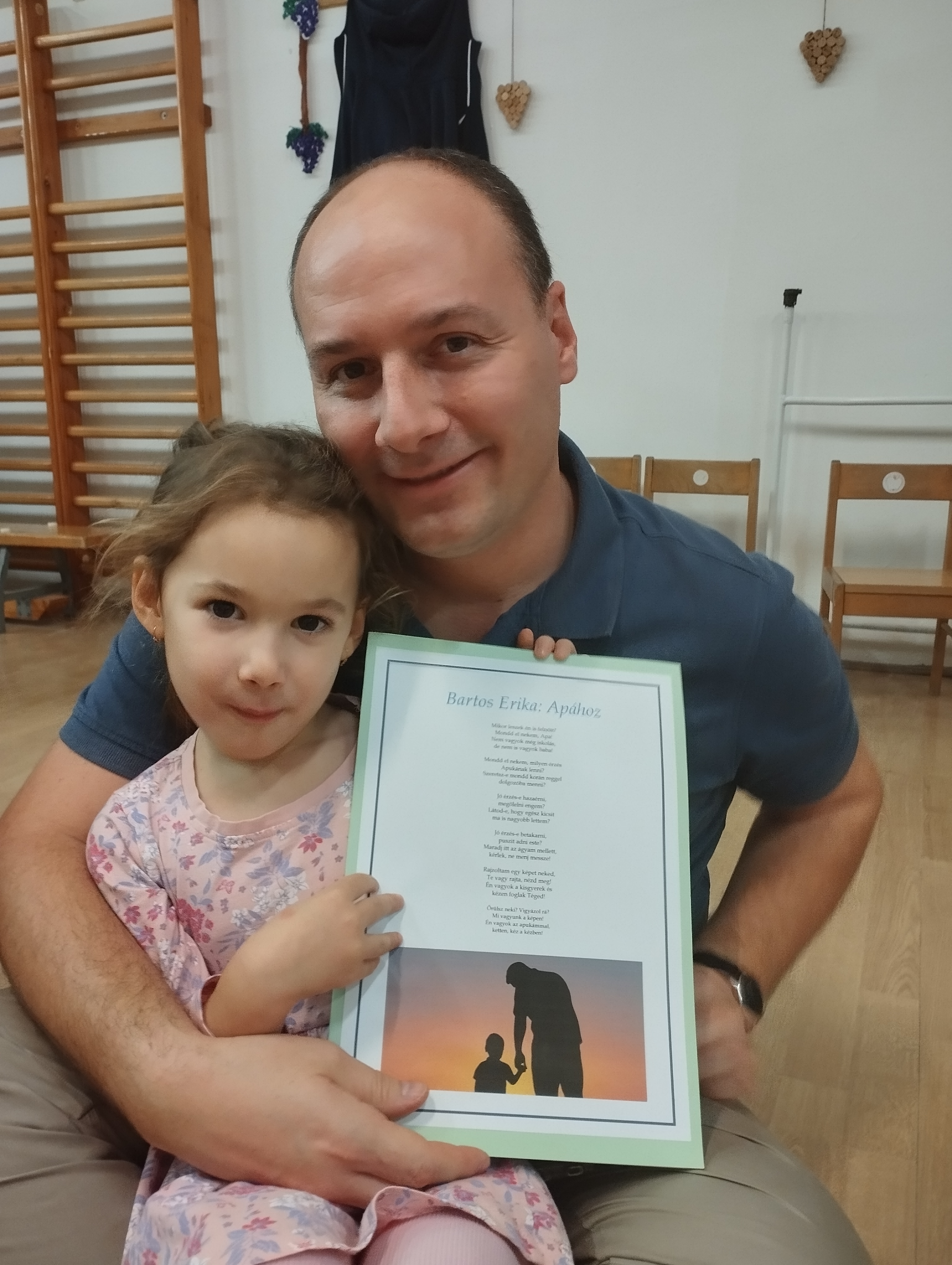 Óvodánkban idén is november 3. hetében került sor az Édesapák köszöntésére. Verssel és énekkel köszöntöttük az Apukákat, Nagypapákat majd a gyermekekkel együtt készített süteménnyel és ajándékkal kedveskedtünk nekik. Az Apukák gyermekükkel közösen, mozgásos, játékos feladatokat teljesítettek, amelyben nagy lelkesedéssel vettek részt.