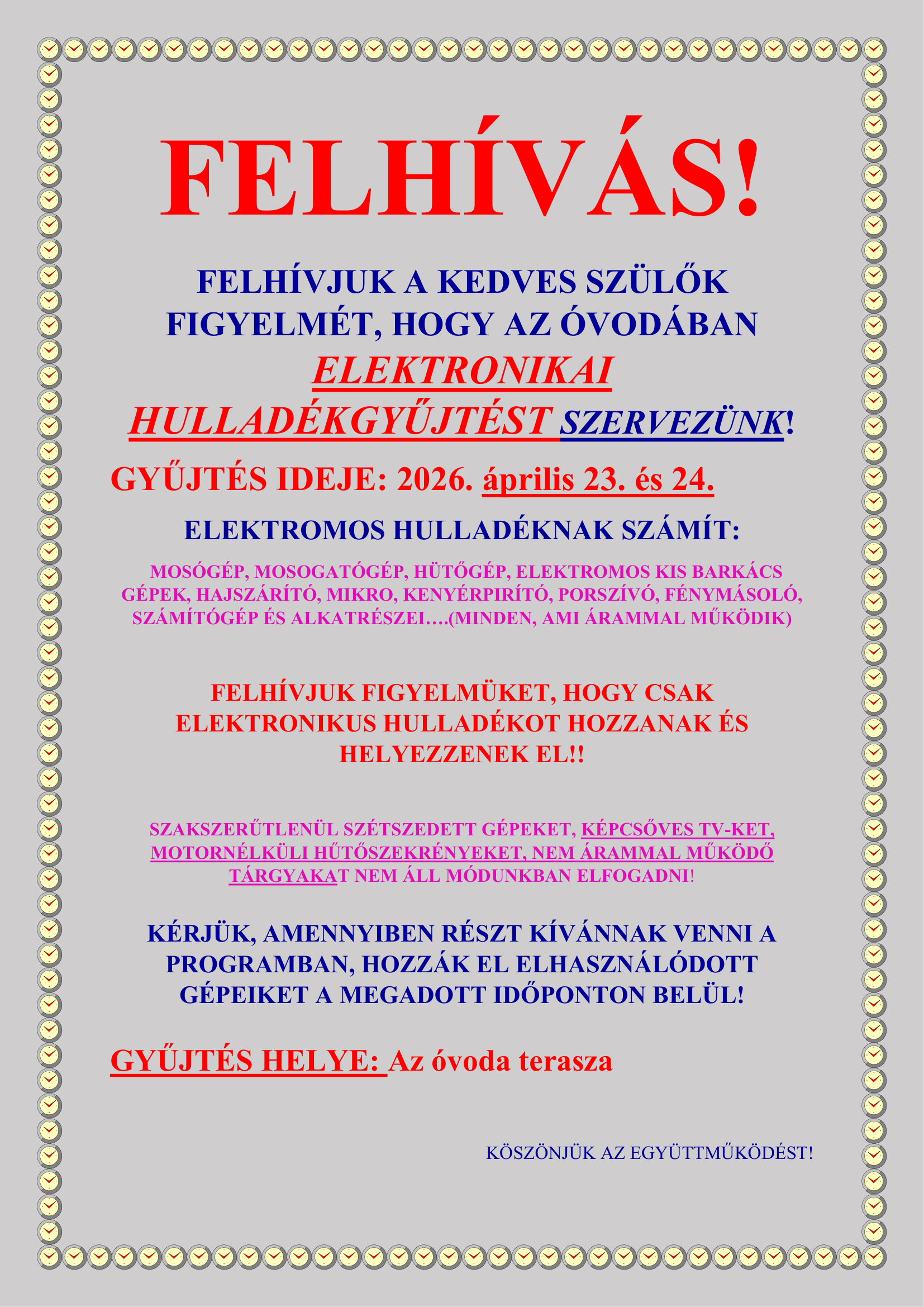 Elektronikai HulladékgyűjtésMegjelent: 2023. november 29. szerda, 11:38 | Írta: Miklós Andrea | Nyomtatás | Találatok: 542 Tovább